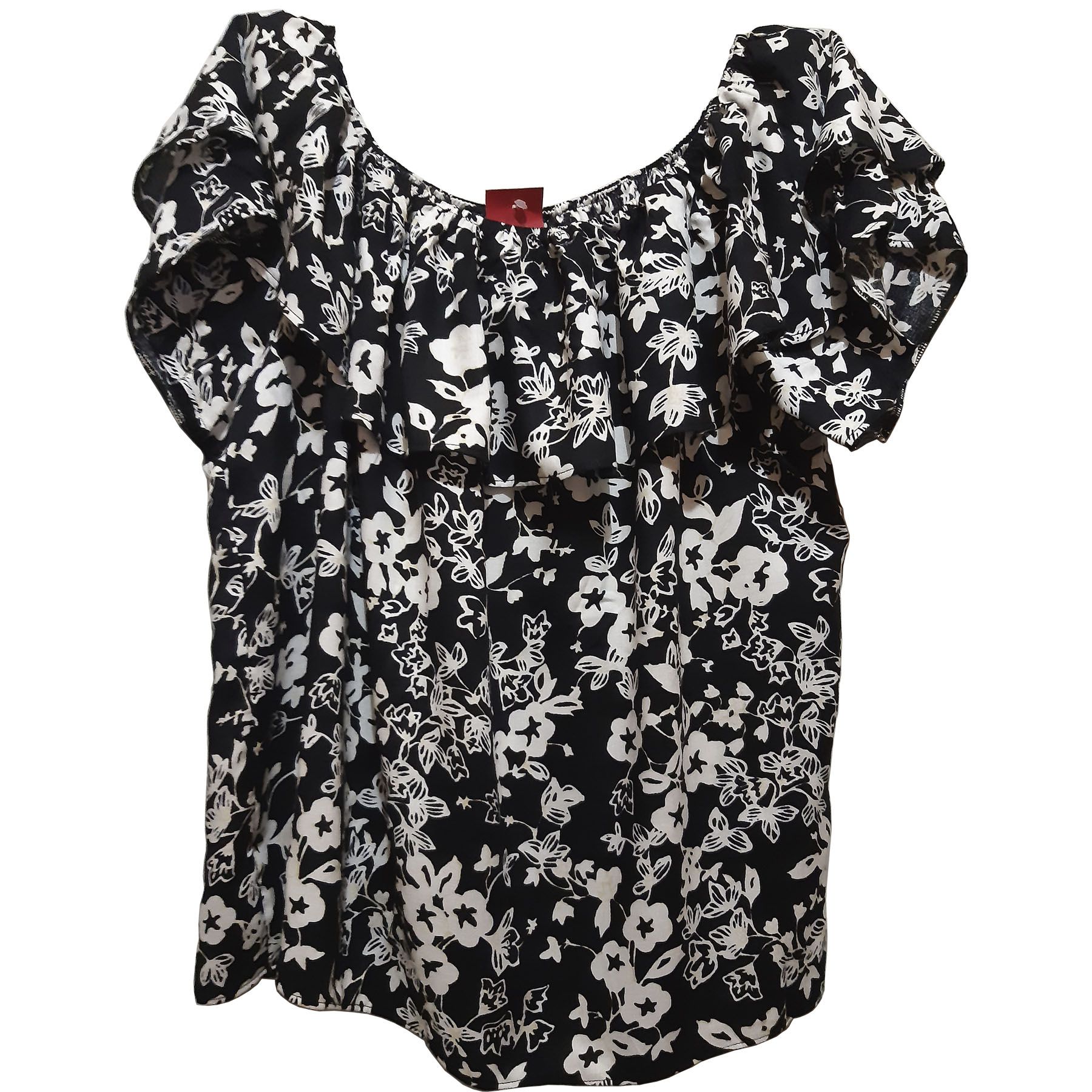 Linda blusa ciganinha de viscose preto e branca plus size.