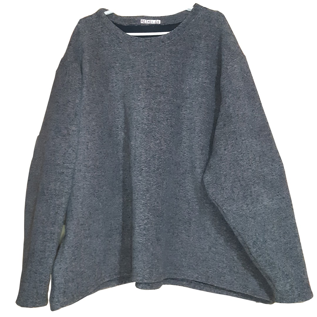 A malha tem um toque extremamente macio ao corpo, sendo que é peluciada na parte interna e tem um estilo atoalhado bem macio e suave na parte externa. Uma malha super versátil, confortável e chique. O tecido é uma mescla de cinza com preto e a parte interna é preta.