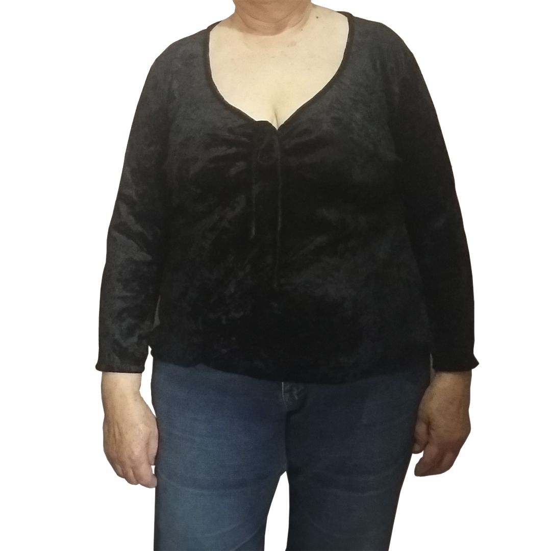 Blusa de Veludo Molhado Preta Tamanho G2 Plus Size Rethi